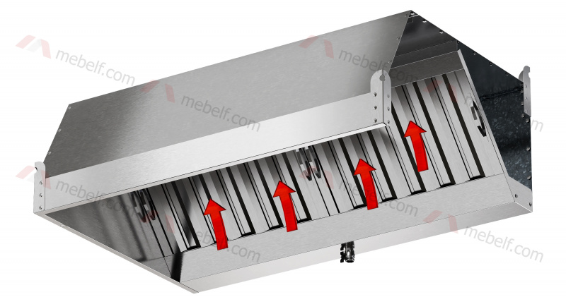 - Зонт приточно-вытяжной нержавеющий пристенный ЗВНП03 – зонт пристенный приточно-вытяжной выполнен из нержавеющей стали AISI430 толщиной 0,7 мм, задняя стенка изготовлена из оцинкованной стали 0,7 мм и оснащен встроенными нержавеющими жироуловителями для удаления жира. Имеет 1 врезку для оттока и 1 для притока воздуха (размер по согласованию)
